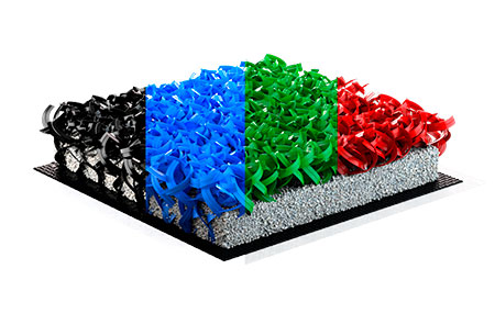 Su estructura texturizada también garantiza un resultado estético óptimo, cubriendo la presencia del relleno de arena.